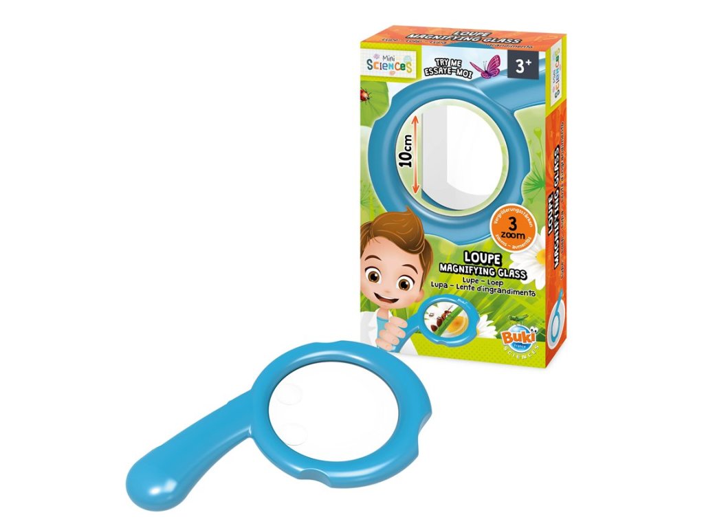 Velká lupa určená děti předškolního i školního věku. Lupa má 9cm velké zvětšovací sklo s 2x zvětšením se dvěma menšími poli s 3x a 4x zvětšením. Lupa se bezvadně drží a je základní výbavou každého badatele.
